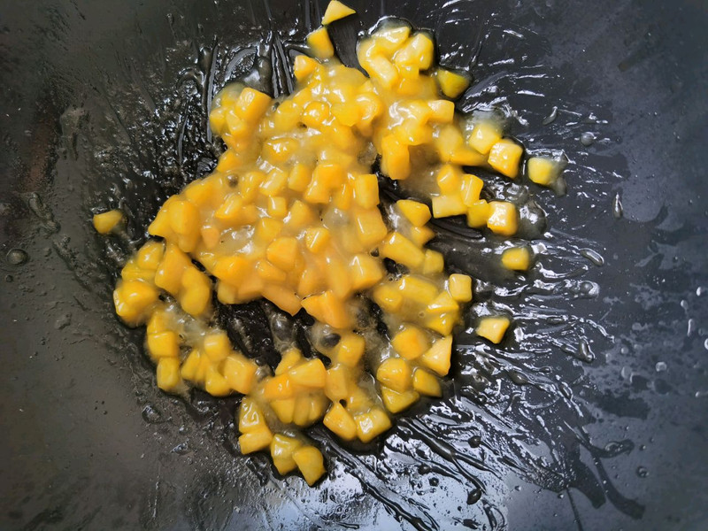 加水淀粉炒至粘稠,是为了蛋挞皮可以包住,不至于流出来!
