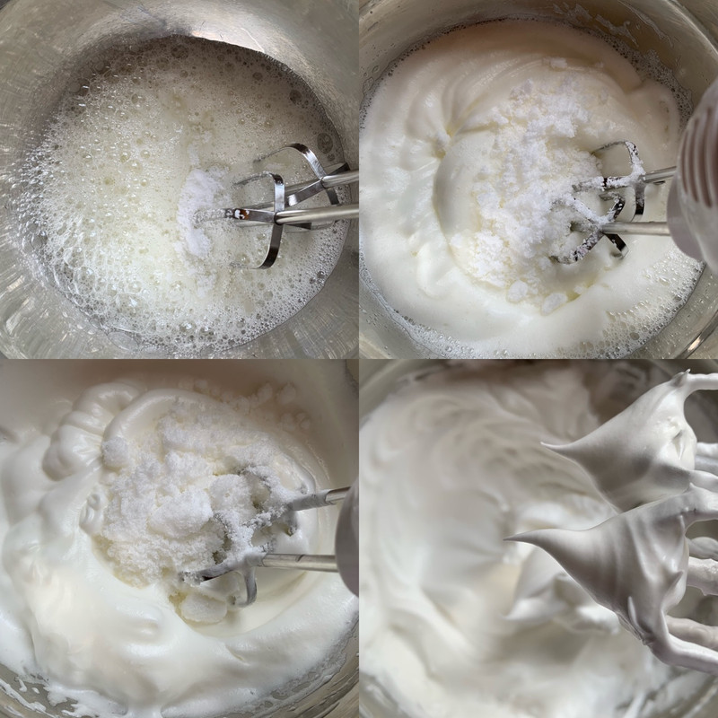 1、鸡蛋60g左右的,4个大鸡蛋满膜,小鸡蛋就用5个,注意打蛋盆要无水、无油、无蛋黄!