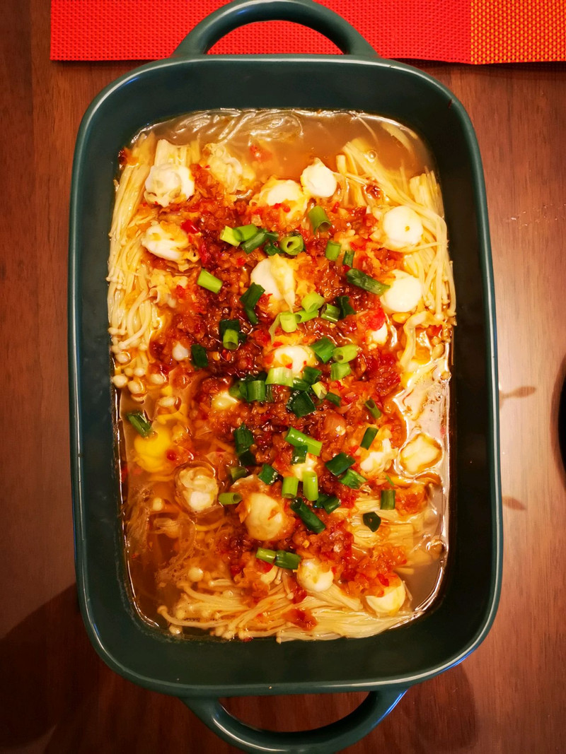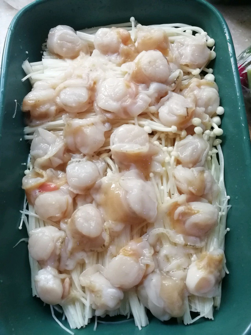 这两天扇贝便宜了 买了2斤野生小扇贝 挖出肉 做了清蒸蒜蓉扇贝金针蘑粉丝 蒜油一定多放点 味道好极了 最喜欢蒜蓉的味道 满屋飘香的 吃多少都不够 还适合减肥人士哟