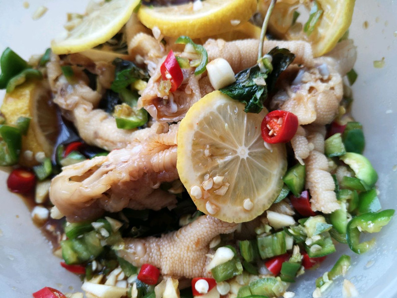 我觉得这道菜有别于别的凤爪,是加入了新型的配方,我不喜欢那种卤味酱香味很浓的菜,更喜欢田园的清香以及食物本来散发的香味。