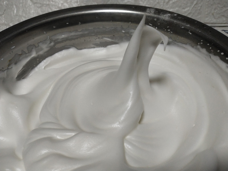 1. 蛋白打至弯钩,倒盆不流动即可;