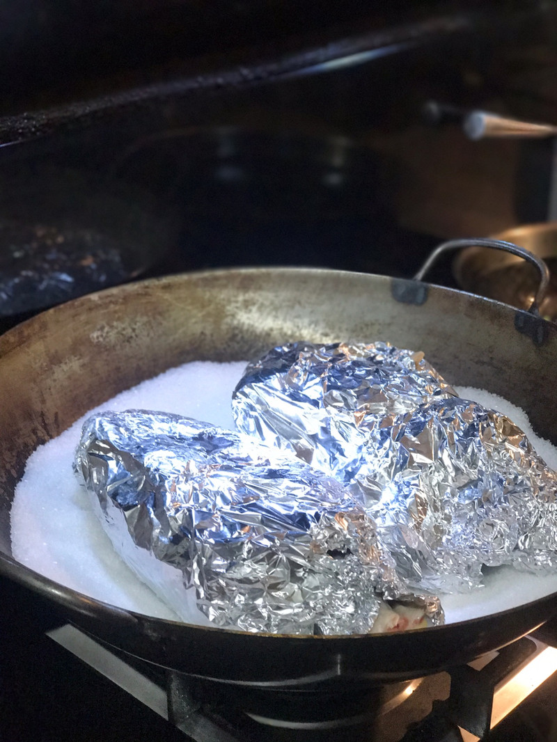 那么你知道盐焗鸡是怎么来的吗?今天咱们就边吃边来说一下我们老家茶香盐焗鸡的小故事!我们遂昌地处山区,端午前农耕插秧,由于雨水多,湿气重,外婆都会杀上几只小嫩鸡,摘几片荷叶,洗净放在老家土灶的大铁锅炒好粗盐上慢煨个把小时,为家里的主要劳动力补气祛湿,也是我们小时候的一道记忆中的美味,今天没摘得荷叶,我改用锡纸,还顺便加了我们这很不错的高山野茶!做了一丢丢小改良!茶香四溢!!