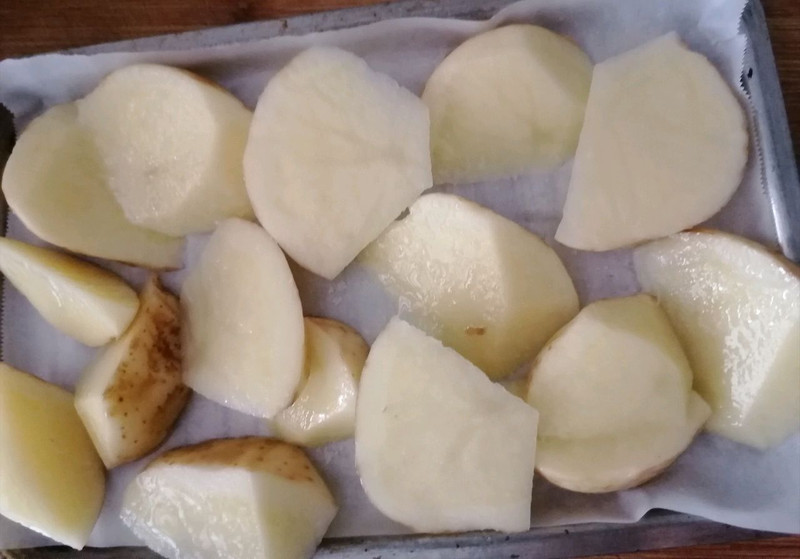 偶然发现烤薯角简单好吃,自己在家做非常方便,还省得大热天在厨房里烟熏火燎,洗洗切切放烤箱里就行了。今天又做了一些烤薯条,结果孩子还是喜欢烤薯角。