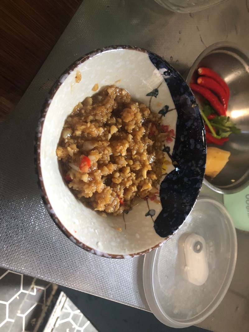 2.在扇贝粉丝加蒜蓉辣酱之前可以微微加点水在里面,保持粉丝的柔软