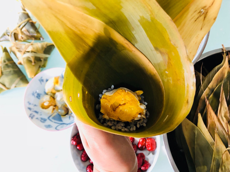 尝试包包咸蛋黄的咸粽子吃吃~