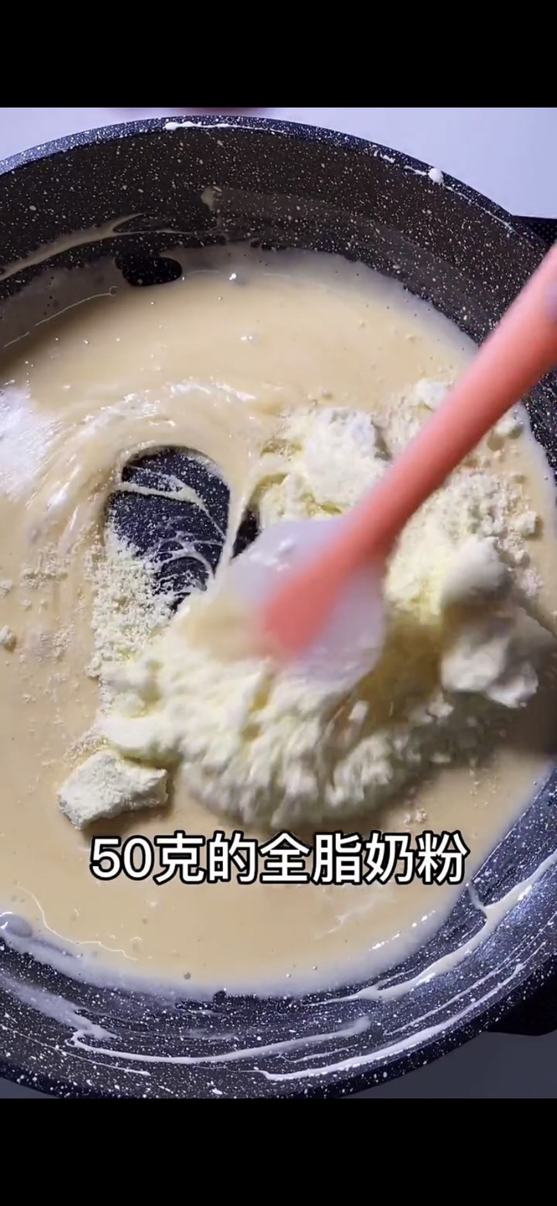 一定要小火哦!棉花糖炒至能拉丝就可以放其他东西了 具体要看视频中讲的哈