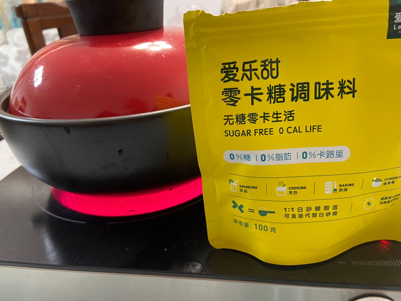 先说评测结果,这一款零卡糖,在甜度上面是可以跟普通的白砂糖相比的,但是,在制作肉类菜肴的时候,收汁之后的粘稠度不会像普通的白砂糖一样那么粘稠,而且相比白砂糖来说,口感并不是那么突出,也就是说,在有其他咸味调味料的时候,甜度会略微被遮盖。