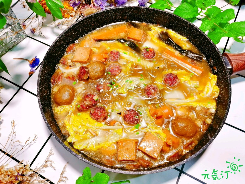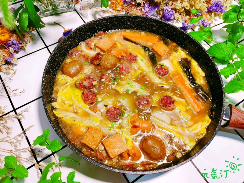 鲜嫩爽口的娃娃菜,好吸停不下来的酸辣粉丝,麻麻辣辣的解馋香肠。