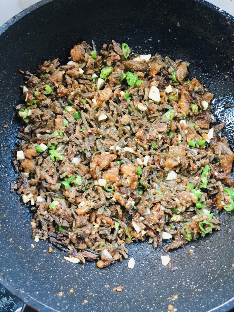 猪油渣是小时候最爱吃的东西!记得小时候每年过年的时候,妈妈炼猪油,我和妹妹都会拿着碗站在锅台边,等着吃猪油渣!现在想想满满的都是幸福的回忆!今天收拾冰箱发现还有一包猪油渣,连忙拿出来,泡了一点儿去年晒的干豆角,一起和成馅儿,给孩子们蒸点包子!一口咬下去满嘴都是猪油渣的香味儿……