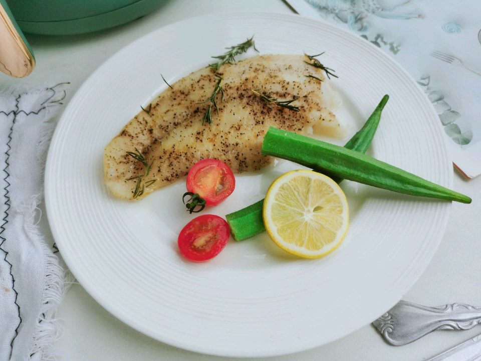 今天给她做了这个迷迭香黑椒龙利鱼,小朋友吃的不亦乐乎。