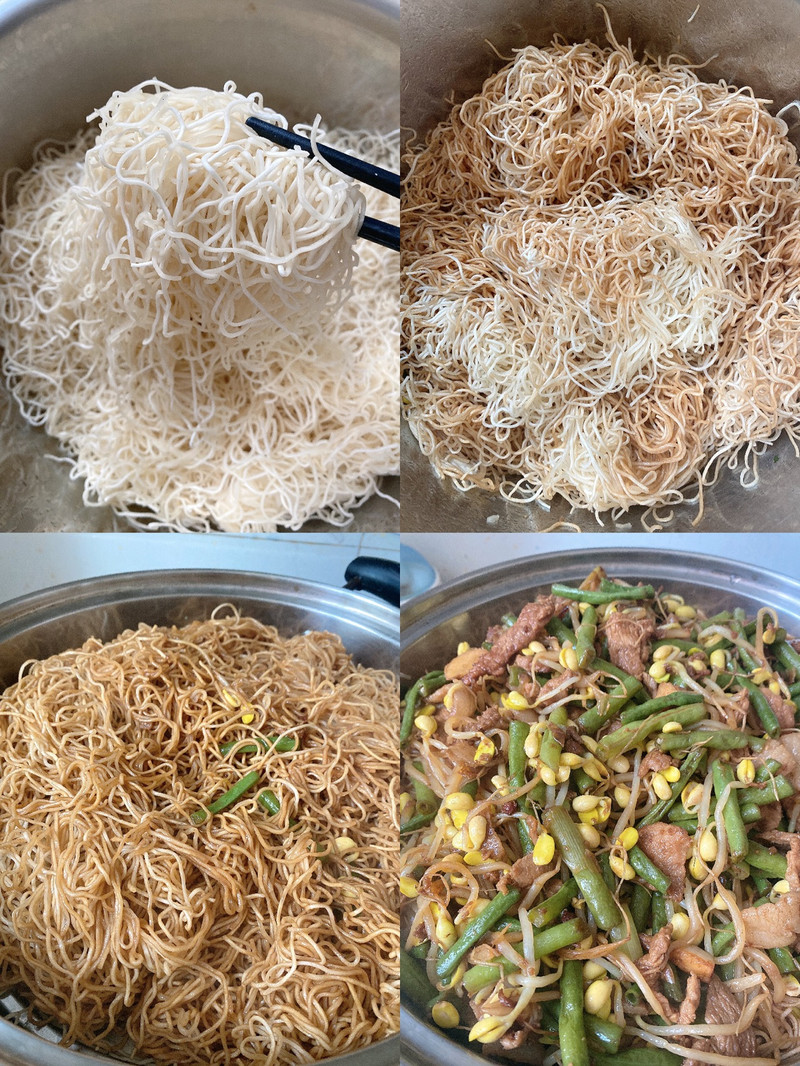 把刚买回来的细面条(有些人喜欢吃稍微宽点儿的面条也可以)放蒸锅上,倒一点点芝麻油(我家的做法是这样,这样蒸出来的面条不那么干)然后把面条散开铺好。上锅蒸20分钟左右。中间可以翻一下面,让它们蒸均匀。蒸面条的烹饪技巧