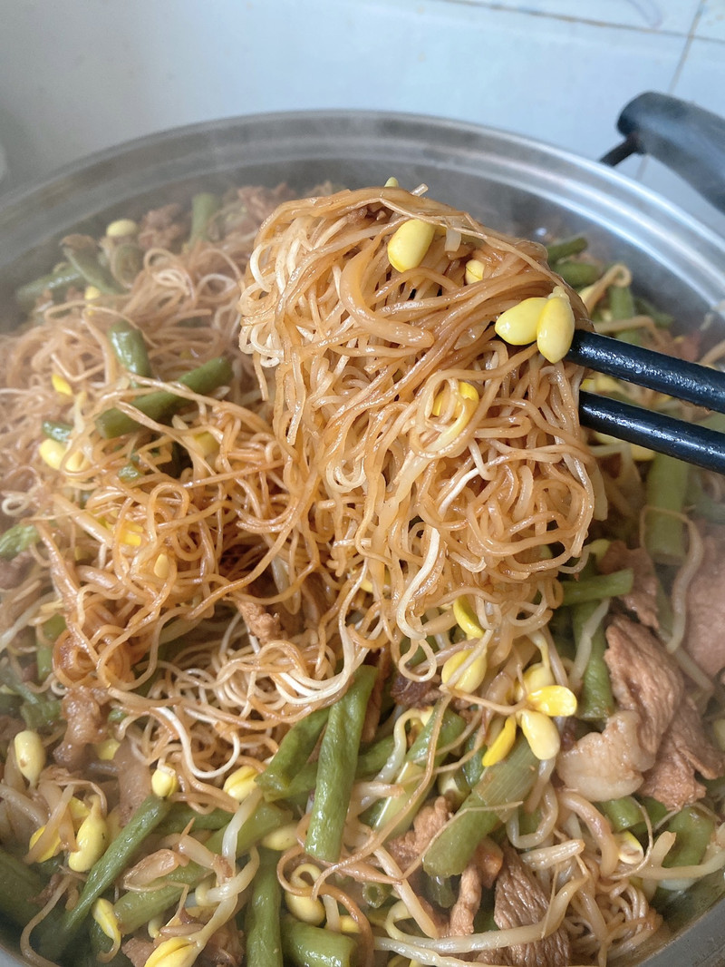按我自己的喜好,一份好吃的蒸面条要吃着不干巴、也不能太油腻,不仅要柔软适中、还得有“韧”劲!面条一拉像有弹性一样,那样的蒸面条才是真的好吃!喜欢吃辣的再配上点辣椒酱,那味道想起来就要流口水了