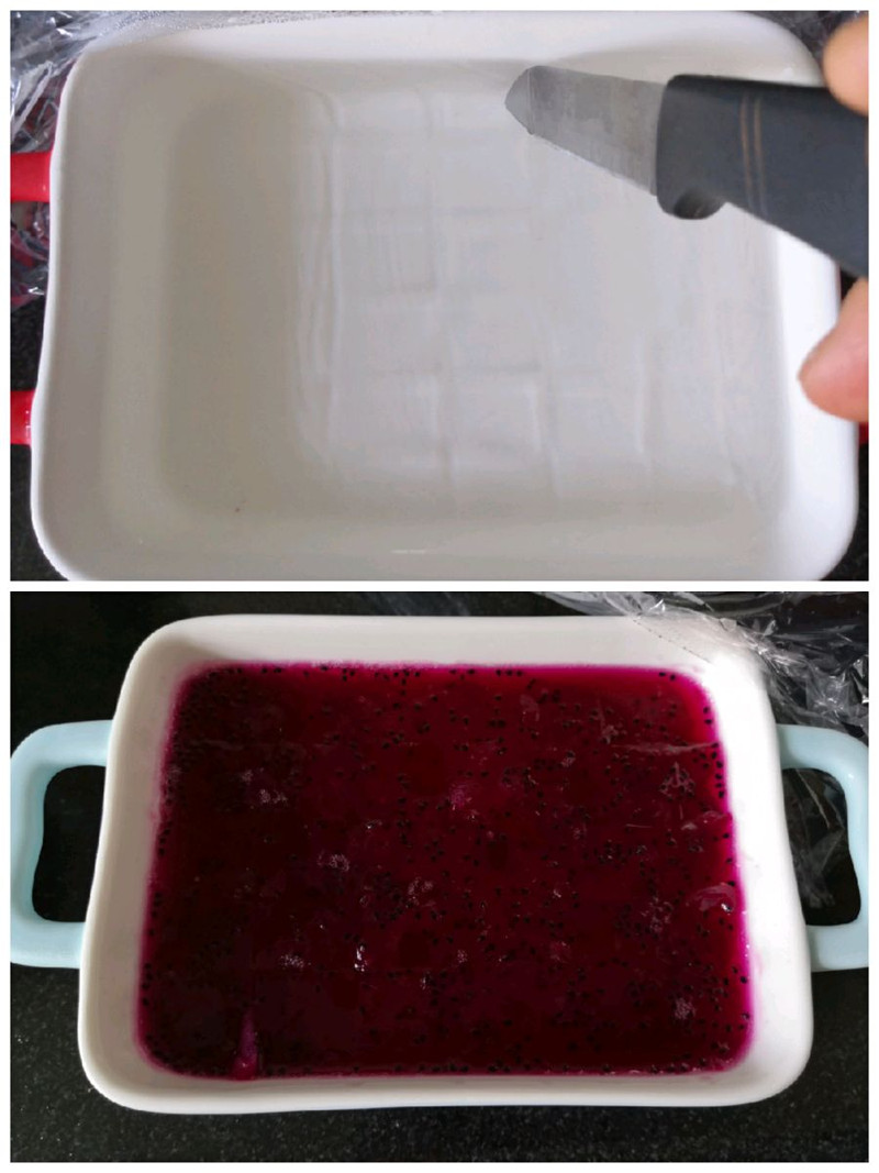 3、因为火龙果自带水果甜度,所以火龙果冰粉中没有加红糖浆。如果喜欢吃甜一点的,也可以少加一点红糖浆。