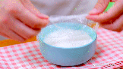 小碗上面盖上耐高温的保鲜膜,四周再用牙签扎几个小孔来透气。 *如果家里没有可以耐高温的Pvdc材质或者pmp材质的耐高温保鲜膜,只有普通保鲜膜的话就不要拿来加热了,用小盘子扣一下防止水汽进入。滑嫩炖奶的烹饪技巧
