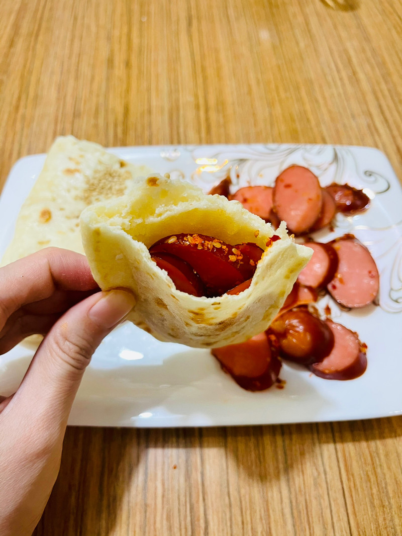 我用了500g面粉做了10个口袋饼,大约50g一个。空心的可以夹蔬菜或者烤肉。一次可以多做几个,每个不宜过大,越薄越好。冻在冷冻层,每次拿出来无需解冻,烤箱150度烤10分钟即可,十分方便。羊肉串我用的滩羊肉,烤箱220度,正反面各七八分钟即可,可以参考我之前的菜谱。
