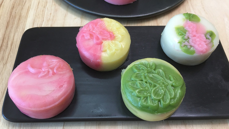 彩色冰皮月饼,美味蛋黄椰蓉馅,简单又方便,分享生活好滋味。