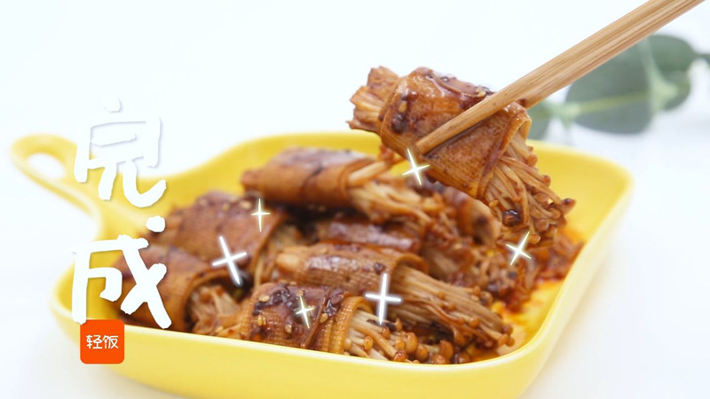 酱烧金针菇豆皮卷丨干净营养的下酒小菜