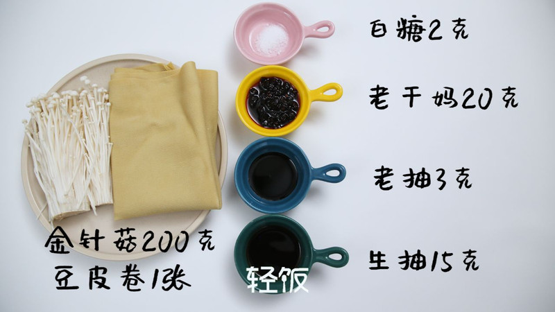 酱烧金针菇豆皮卷的做法