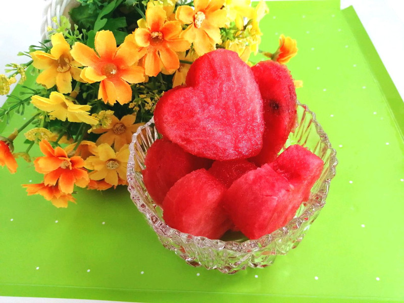 孩子小的时候会把西瓜没籽的地方留给孩子,这个应该是每个当家长的都做过的事吧,今天用心型的模具刻出爱心西瓜,给家人,给朋友,当爱心西瓜呈上来的时候,都会有一份感动吧,生活中需要这样的感动,合理膳食,守护家人健康!