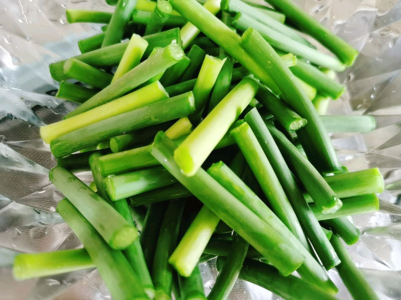 蒜苔先焯水再炒比较容易熟透,而且容易入味,焯水的时候记得加点食用油和食盐,这样可以保持翠绿的颜色。腊肠本身带有咸味,只要加入一点点食盐调味就可以了,不要加多了,不然会太咸。