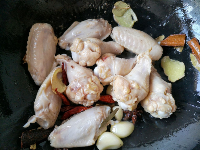 1.将鸡翅先炒至表面微焦之后再加调味料翻炒上色后加开水。