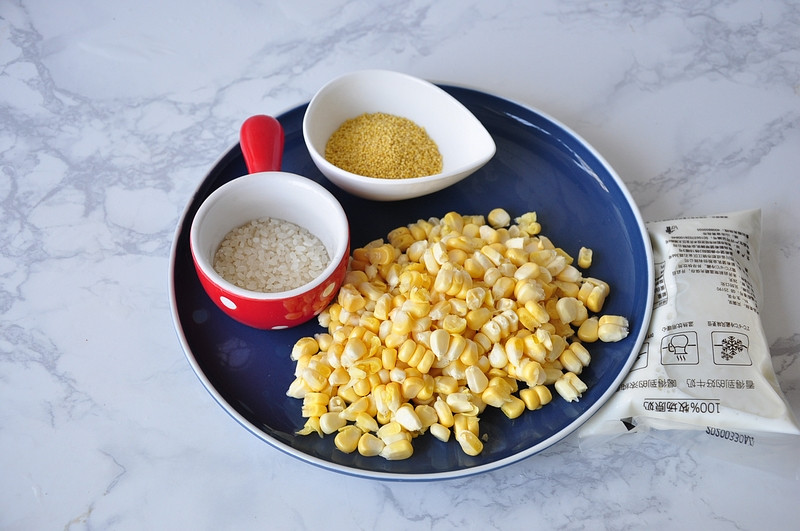 水果玉米1根 牛奶250克 冰糖20克 小米30克 大米10克 水适量