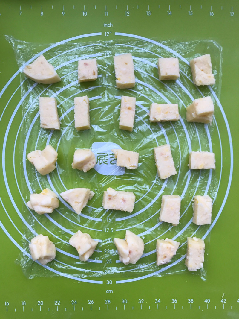 奶黄馅(A的部分): 鸡蛋黄120g(我没用现成的种。用了煮鸡蛋的蛋黄) 奶粉110g,芝士粉60g,白糖50g, 澄粉50g,黄油60g,奶油40g,椰蓉6g, 牛奶200ml,水60ml。 混合均匀后,放入上气的蒸锅蒸熟。 每10min搅拌一次,重复2次。 放入冰箱冷藏备用。爆浆奶黄月饼的烹饪技巧