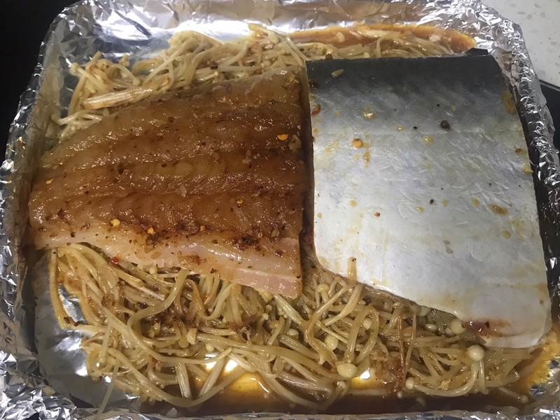 小的时候被鱼刺卡过,导致现在吃鱼最讨厌各种鱼刺和腥味了,直到开始减脂,才知道鱼肉原来也可以一整块的夹着吃,没有烤箱的朋友也可以用蒸的,简单20分钟就搞定,做好的鱼肉鲜嫩多汁,金针菇吸收了汤汁也是越吃越满足,成为我这个懒人最常吃的一道菜。