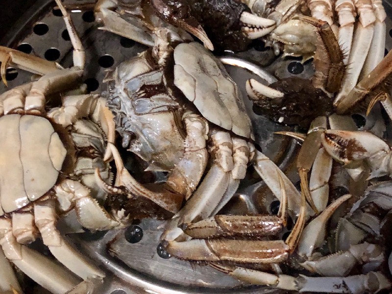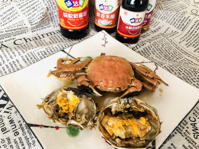 清蒸大闸蟹是食蟹最原始和鲜美的做法,但不易多食。订购的蟹蒸了吃,炒了吃,还有几只做了熟醉蟹,因为家人不喜欢生食。醉蟹熟着吃,味道也很好,一般是煮熟螃蟹之后,放入好的调味汁,加大量的姜、花雕酒去寒。熟醉蟹切开,蟹黄蟹肉因为蒸熟变的细腻紧实,又不失鲜嫩。