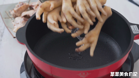 我们家庭做法倒不必如此大动干戈,拿鸡爪和猪皮一起煮就成了,食材很好买,上菜市场就能买到。