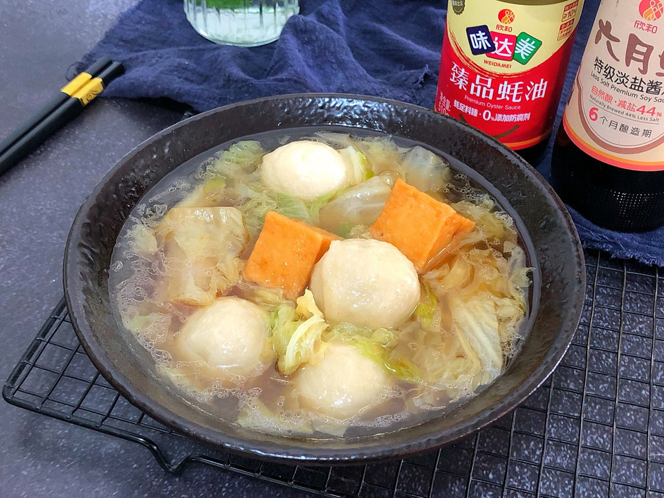 墨鱼丸炖白菜特别适合秋冬季节吃,热乎乎的暖胃又好吃,白菜好吃的季节也是从秋天开始,在北方冬天白菜会囤一堆,和土豆粉条豆腐烩菜比较多,而我很喜欢吃墨鱼丸,加点鱼豆腐,所以我家经常这样炖着吃