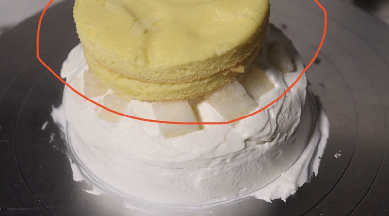 3. 蛋糕抹奶油的时候轻一点,没有特别高的要求,填满然后从下往上做成山的样子就行;