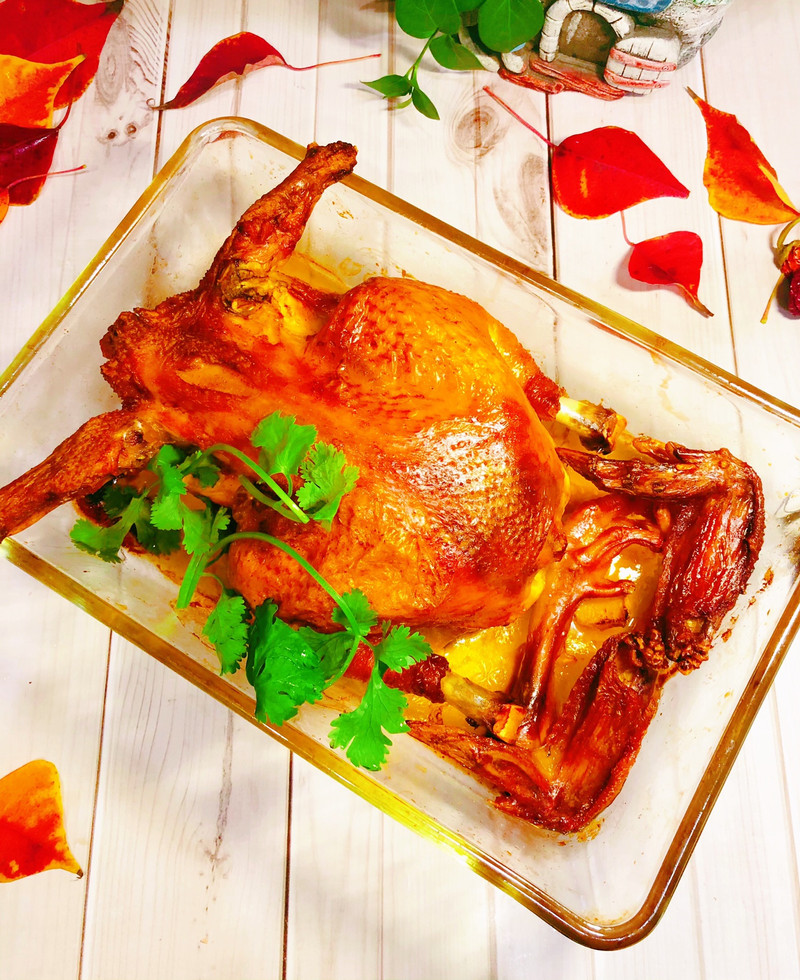 禽类中:鸡也是日常家庭中经常会做着吃的食物之一,烤鸡的风味也很味美受欢迎,烤鸡后风味独特的口感香味,在2020年的感恩节之际,做了个烤全鸡风味,烤鸡味美也是一道中菜上品的菜肴,主要先将鸡按自己喜欢的口味用调味料盐制一下,椒盐,孜然粉,鸡全身上油二次等,鸡本身营养能提高人体免疫力,补充能量,对增加免疫力是益的,增加热堂....。调节脂肪代谢,提供膳食纤维,增强肠道蠕动功能。家人爱家是就爱做,“烤鸡味美”感恩节暖心又暖胃,好吃全家乐 #橄榄中国味 感恩添美味#秀出感恩菜.赢全年用油!