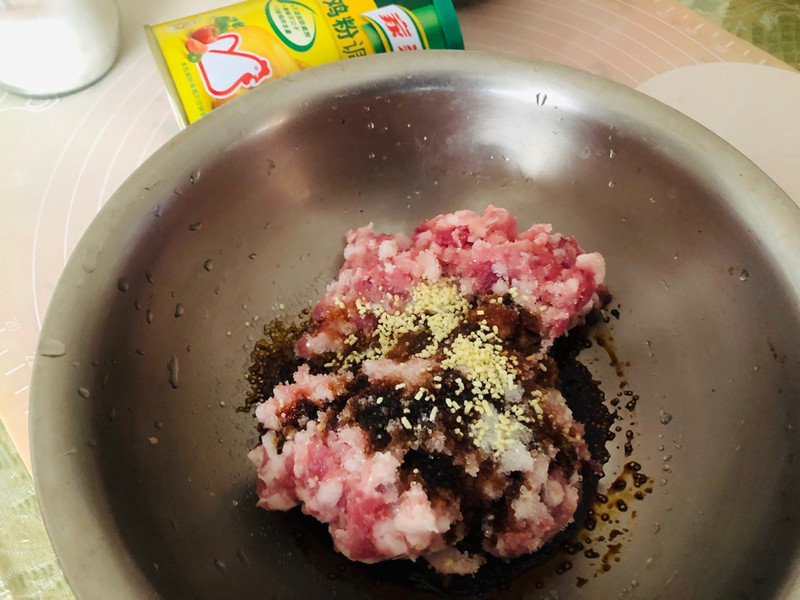 肉皮冻要提前熬好,冰箱冷藏后切小粒混入肉馅。