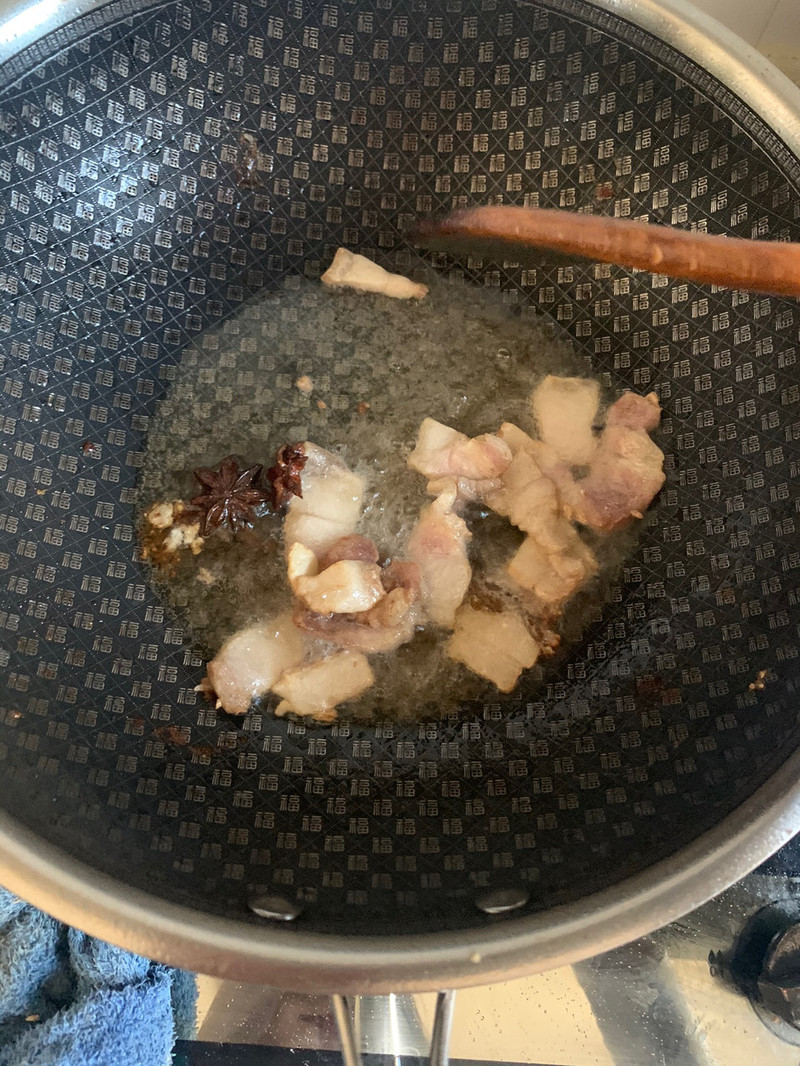 这道菜放点五花肉 最好是稍微肥点的 炖出来鱼的口感会更香 我煎鱼时鱼表面抹一层薄薄的面粉 煎鱼时完全不担心会粘锅底