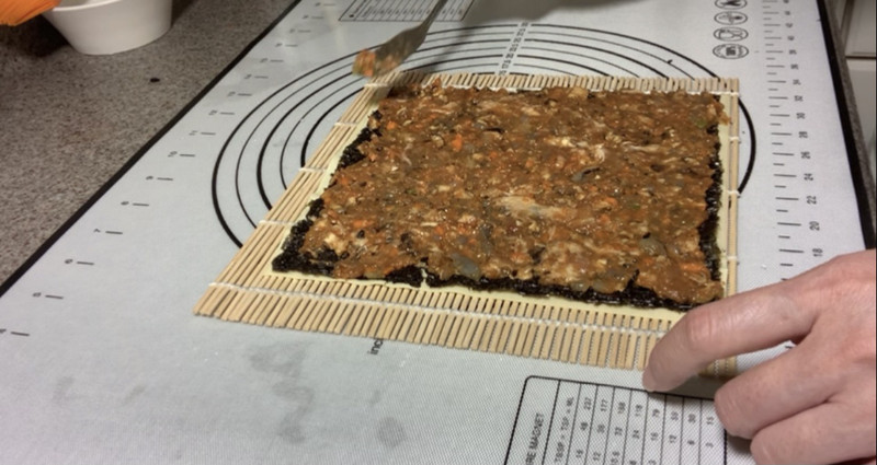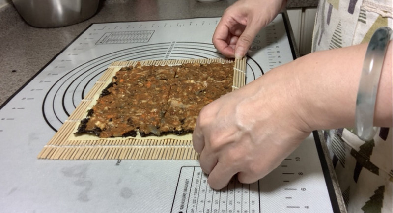 为了使馅料更细腻美观可以加些淀粉,一定要卷紧,否则就容易散开