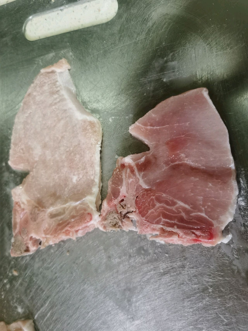 1一定记得加淀粉捶打大排,这步是大排肉质细嫩的关键,小孩子吃的话可以把大排骨头直接剃掉