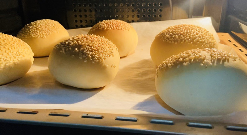 1.汉堡胚二次发酵时,要在烤盘下放入一盘开水,增加湿度,做出来的汉堡胚更松软。