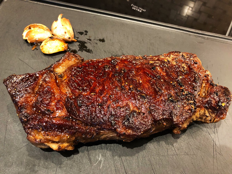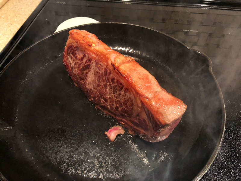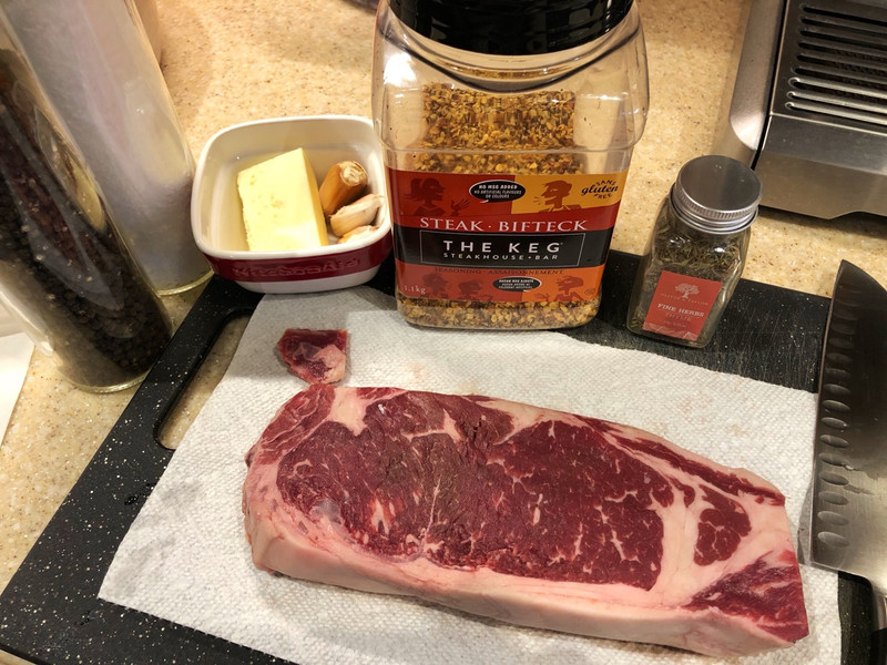 鲜牛排最佳。 谷饲,草饲关系不太大。级别AAA以上就可以了,油花发布越均匀越好。不推荐各种和牛,实在太油。适合配饭吃,单吃一小块就腻了。 部位选择建议多试几种找到自己满意的选择。Tenderloin/里脊肉最贵,嫩,无油,适合浇汁做法;Ribeye/肋眼肉最佳,特别是外圈一层富含油脂的部分,小贵;Striploin/纽约客,性价比之王;Sirloin/西冷牛排,这个有点坑。Top Sirloin是ok的,其他Sirloin不如Striploin风味好。据说台湾管Ribeye叫沙朗牛排。不要问为什么,只能说“我们不一样”。 以下使用的是Costco整条strip loin分切,真空冷冻的牛排。需要提前一天放冰箱冷藏室退冰。 最佳厚度为1.5 inch/4厘米以上 重量25 oz/700多克/
