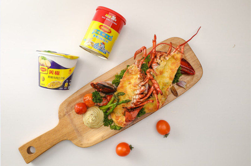 望壳止馋?大可不必!美极教您在家就能轻松自制的美极芝士焗波龙。经过烤箱的烘烤,美极鲜鸡粉的鲜香融合着蒜粒的香气渗入龙虾肉中,虽被芝士盖的严严实实,但依旧散发着诱人的海鲜香。摆盘的时候配上一份香气扑鼻的美极原味牛肉土豆泥,色香味俱全的美极芝士焗波龙就出炉啦!