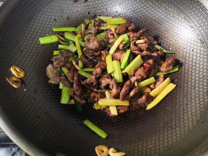 2.肉切的时候是条理分明的,但是炒的时候有的会粘连住,成坨坨。所以要快速翻拌!