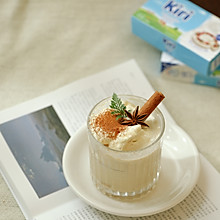 这次我们对于普通的艾格诺酒(Eggnog)做了一点小改造,不仅是加入了Kiri奶油芝士,更让它变成了一杯“可以吃”的艾格诺酒(Eggnog),一勺体验两种味道,口感也更有趣。