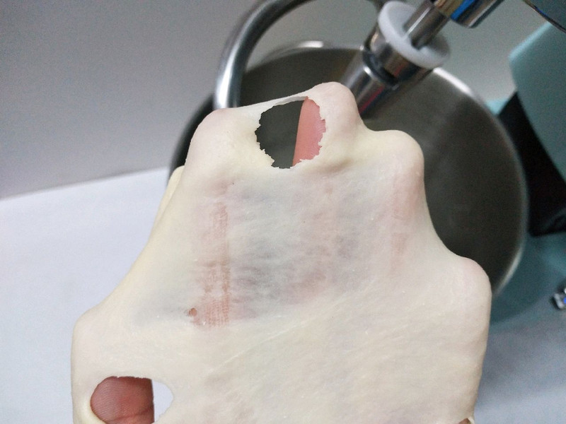 3.如果室温高,可以把液体和揉面桶都冷藏后再用,揉面的时候注意控制面团温度