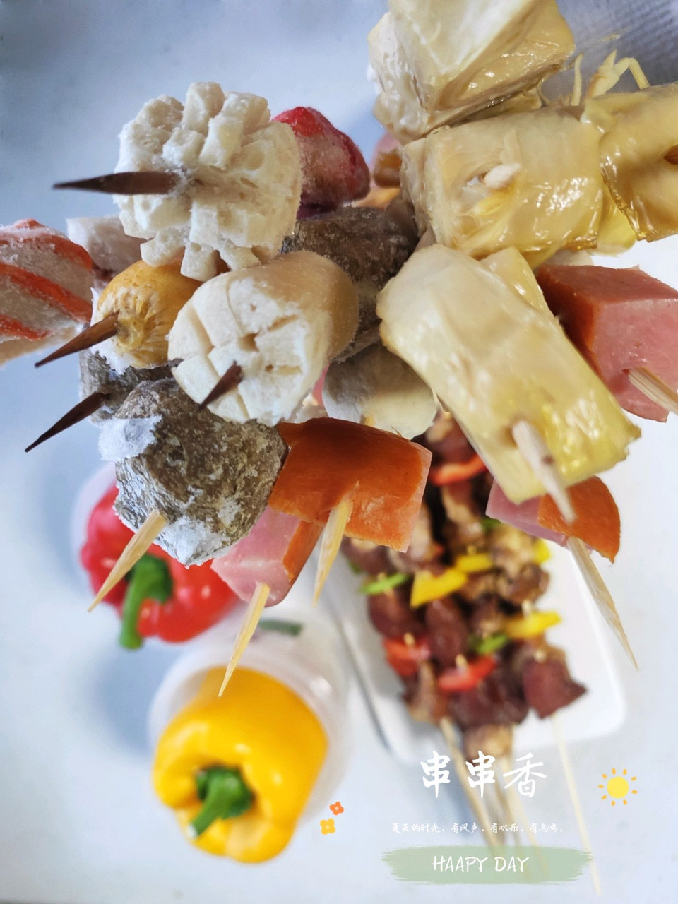 初次用 煮了串串香 不得不说 法格多功能锅和串串绝配 是自己串的 大小和锅子尺寸正合适 一锅同时煮好多 排的整整齐齐的 非常方便拿取