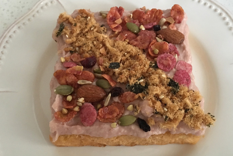 网红芋泥肉松水果麦片开放三明治