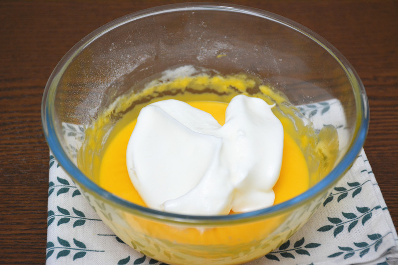 3、还可以在制作蛋糕糊的时候加入一些果蔬粉,或者可可粉,抹茶粉都可以的。