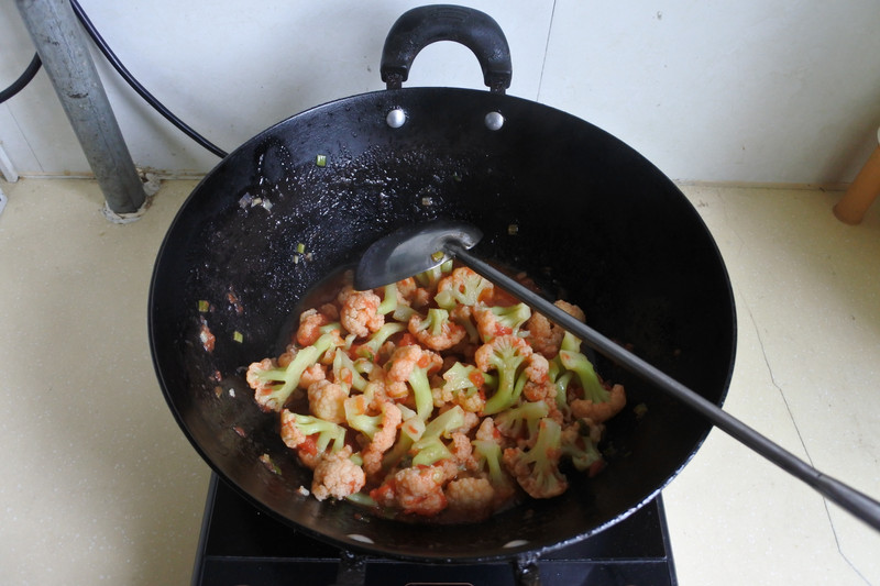 这一想起来才发现竟然有好几年都没有吃过普通的菜花,于是买了一颗,正好家里面的西红柿还有两个,放了几天也成熟得差不多了,两个搭在一起正好可以做一份茄汁菜花,哈哈~