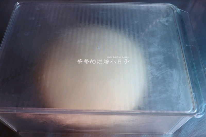 整形好之后放入450克吐司盒模具。 开始二发,我是放在发酵箱发酵的,温度35度,湿度80%,没有发酵箱的朋友也可以借助烤箱二发,烤箱没有湿度可以调节达不到准确,可以放一碗温水保持大概湿度。时间没有固定的,主要看状态,发酵到大概8~9分满,轻轻按压面团表面的地方不会马上回弹,面团又比较有弹性,就可以拿出来。 在烤箱发酵的话要算上烤箱预热的时间,因为拿出来之后面包还是持续发酵的,所以可以预留一点点。 发酵到差不多要完成的时候拿出来后220度预热烤箱。