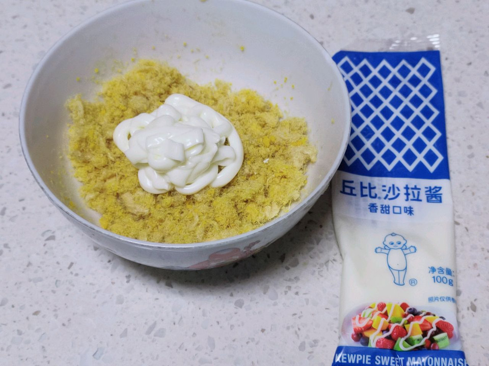 色拉酱用蛋黄味也行,只是个人觉得香甜味比蛋黄味更好些。