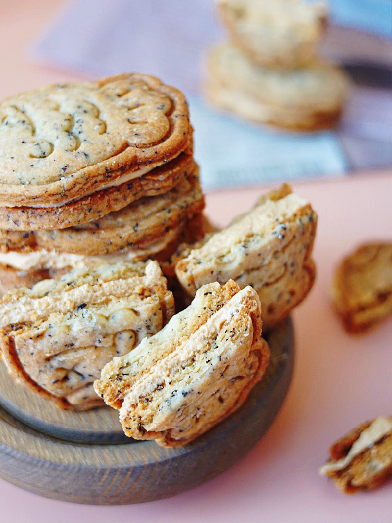 入口轻抿,酥掉味蕾的伯爵红茶曲奇饼干搭配顺滑的焦糖夹心,再放进冰箱冷藏一夜,还带有一点冰淇淋的口感。真的是绝配啊。